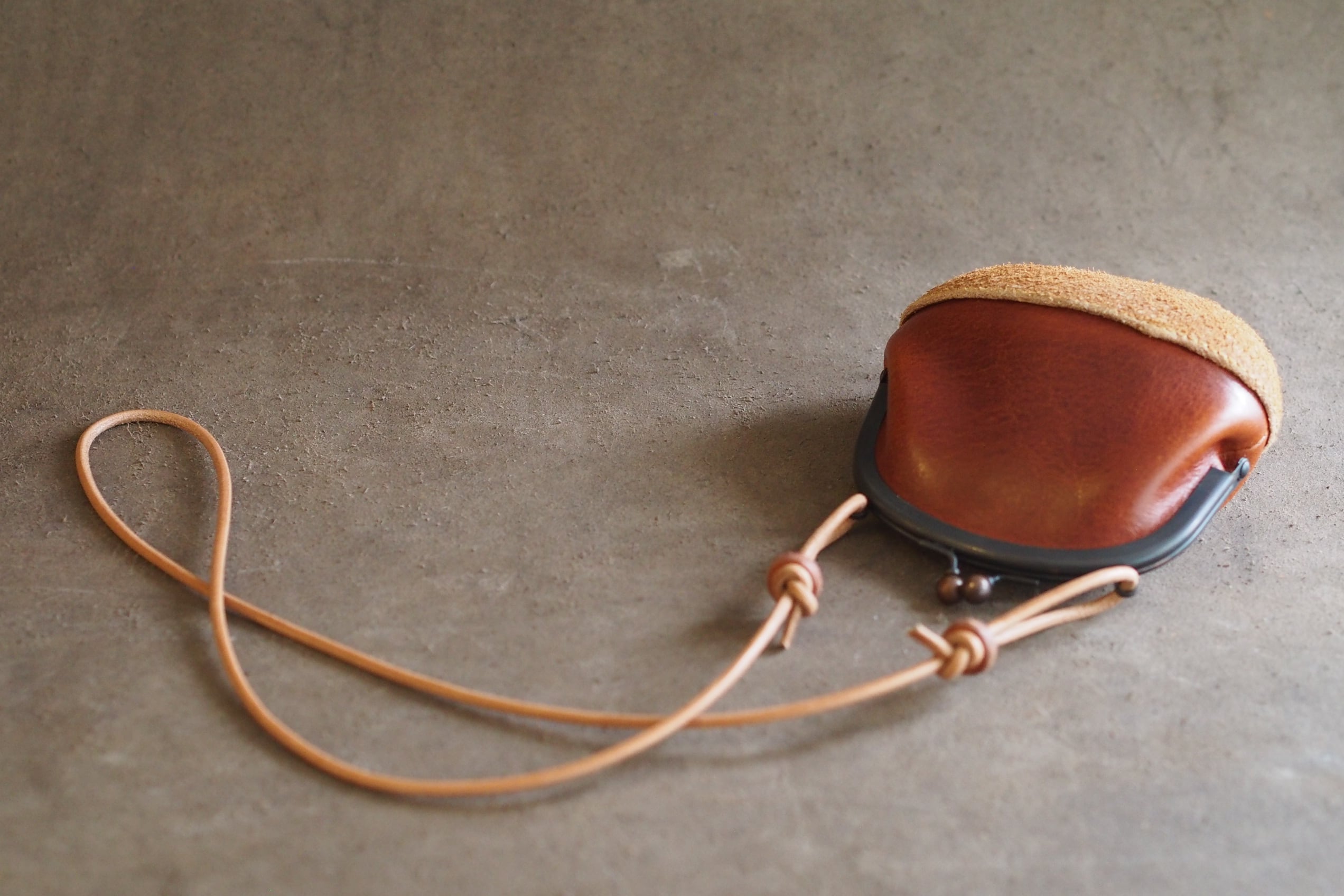 口金にカンが付いていますので、別売りの革紐を付けて首に掛けられます。