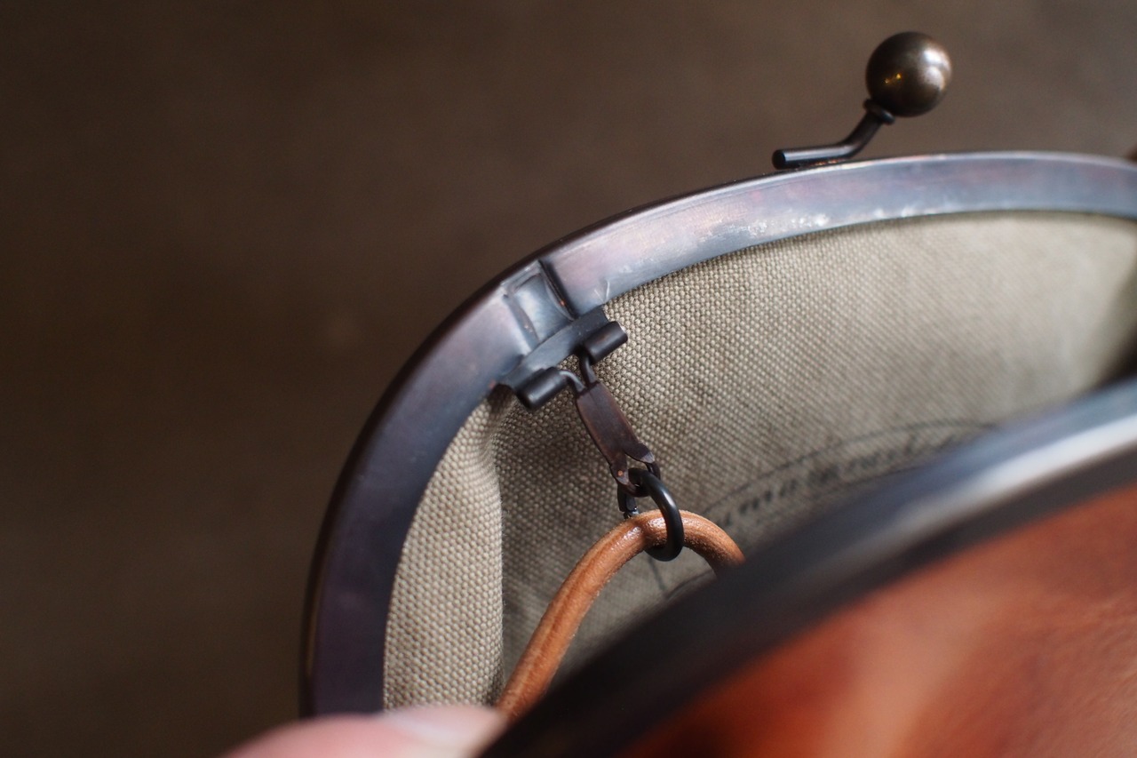 口金には兼用カンが付属され、肩掛けのショルダー紐をバッグ内に仕舞う事も出来ます。